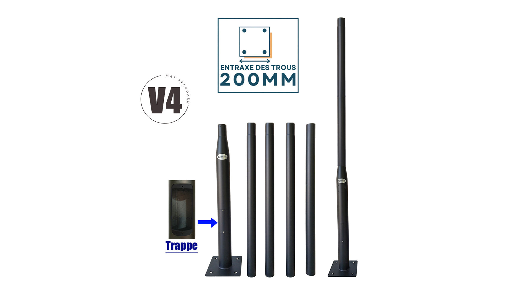 Mât pouvant s'adapter sur massif béton avec entraxe latéral 200 x 200mm ( massif non fourni)