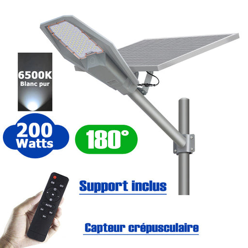 Lampe de rue solaire - Série INTERSTELLAR ULTRA - 600 Watts - 3600 Lumens - Angle 150x70° - IP65 - Lampe 62 x 30 x 8 cm - Panneau 67 x 45 cm - Controleur intelligent - Avec télecommande - Capteur PIR - 6000k - Support inclus - Capteur crépusculaire