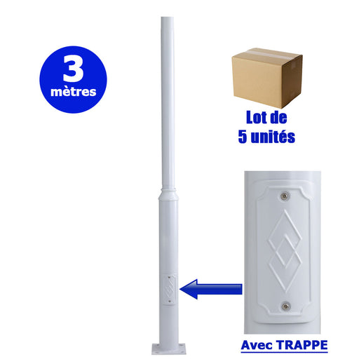 Mâts / Poteaux pour lampe de rue - Série STANDARD V2 - Avec Trappe - Couleur Blanche