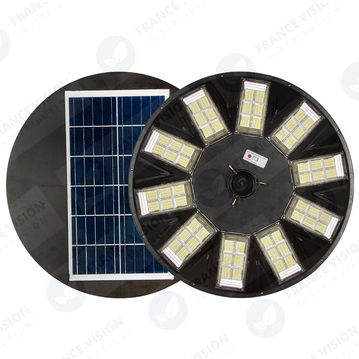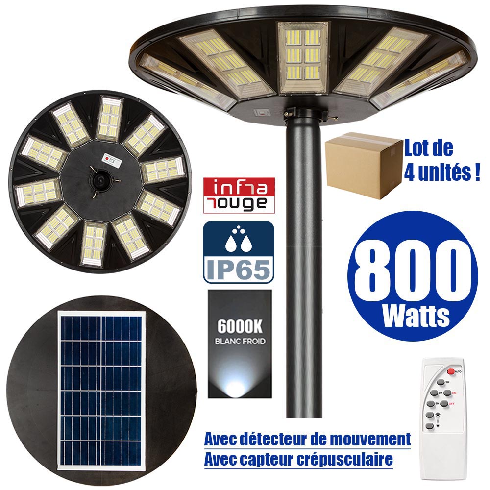 Lot de 4x Lampes solaires pour extérieur - Série OVNI - Version HERCULE 800 - 2700 Lumens - Angle 360° - Lampe 745 x 135 mm - Panneau 625 x 345 mm - Diamètre tube d'insertion 60 - 76 mm - Détecteur PIR – Capteur crépusculaire - Télécommande - 6000k