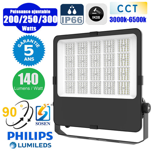 Projecteur LED filaire CCT (Couleur Changeante en Température) - Série CITY PLUS EVO V2 - Modèle 9 en 1 - Puissance ajustable 20 / 30 / 50 Watts - 140 Lumens/Watt - Angle 90° - 25 x 21 x 4 cm - IP66 - IK08 - Câble 1 mètre - Garantie 5 ans