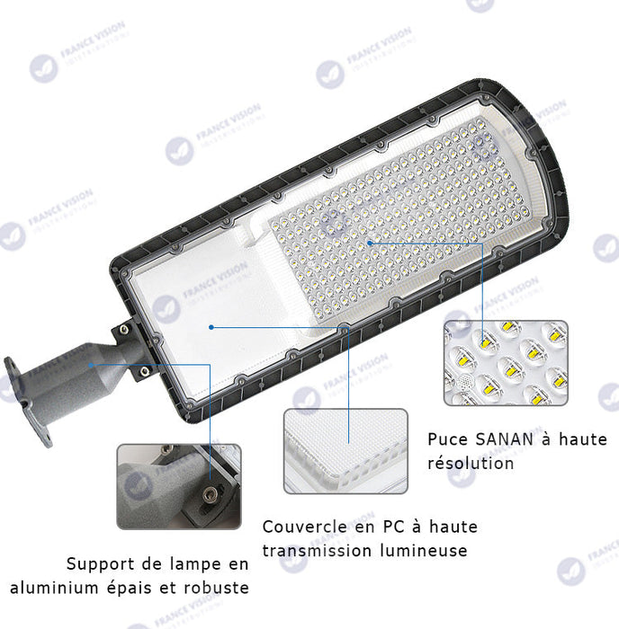 En somme, un lampadaire à 120 Lumens/Watt offre une solution d'éclairage plus efficace, économique et durable pour l'éclairage public, tout en contribuant à réduire l'impact environnemental et en améliorant la qualité de l'éclairage dans les zones urbaines ou rurales.