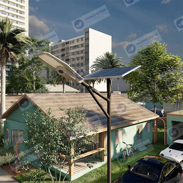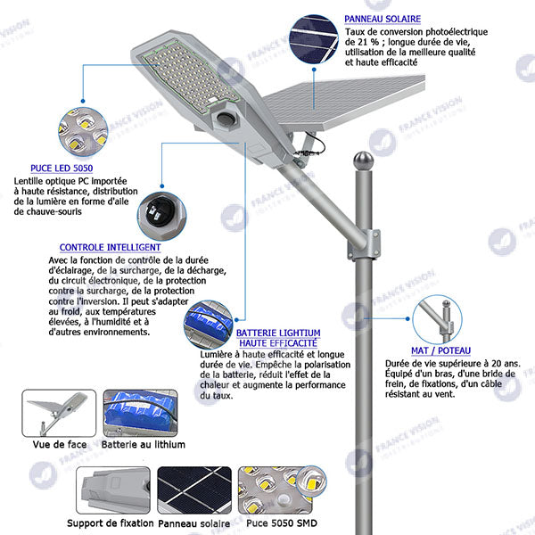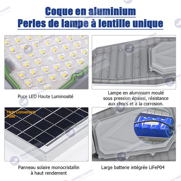 Le panneau solaire incorporé permet à cette lampe de rue de fonctionner en toute autonomie. Le pack est équipé d’une batterie lithium-ion phosphate de fer, un matériau de choix qui permet d’emmagasiner beaucoup d’énergie sans risque de surchauffe. Avec une charge complète, cette lampe solaire assure une longue autonomie qui peut dépasser 18 heures. Sa durée de vie minimum est estimée à 50 000 heures. Sans oublier qu’une fois installée, elle ne nécessite aucun entretien particulier.