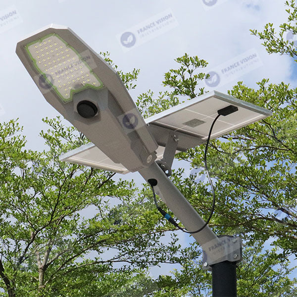 Le panneau solaire incorporé permet à cette lampe de rue de fonctionner en toute autonomie. Le pack est équipé d’une batterie lithium-ion phosphate de fer, un matériau de choix qui permet d’emmagasiner beaucoup d’énergie sans risque de surchauffe. Avec une charge complète, cette lampe solaire assure une longue autonomie qui peut dépasser 18 heures. Sa durée de vie minimum est estimée à 50 000 heures. Sans oublier qu’une fois installée, elle ne nécessite aucun entretien particulier.
