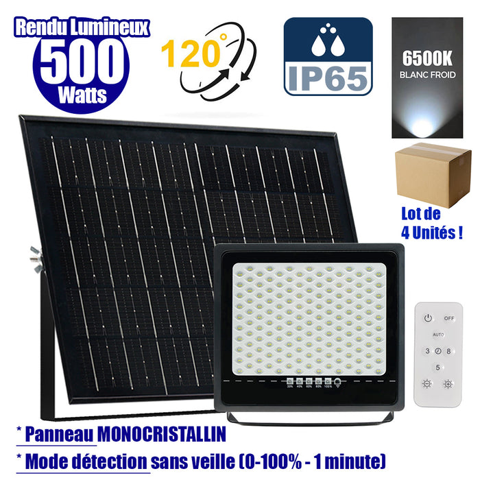 LOT DE 4 PROJECTEURS LED SOLAIRES 500 WATTS !