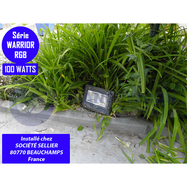 Cette lampe solaire de la série WARRIOR est un projecteur LED solaire RGBW (Multicolores + Blanc froid 6000k) offrant un rendu lumineux de 100 W. Le choix des couleurs pour votre éclairage ne dépend que de vous. Ce projecteur multicolore est parfait pour créer un effet unique dans votre jardin. Il convient aussi pour les usages commerciaux comme l’éclairage d’une devanture de magasin, une terrasse de bar ou encore un espace d’exposition.